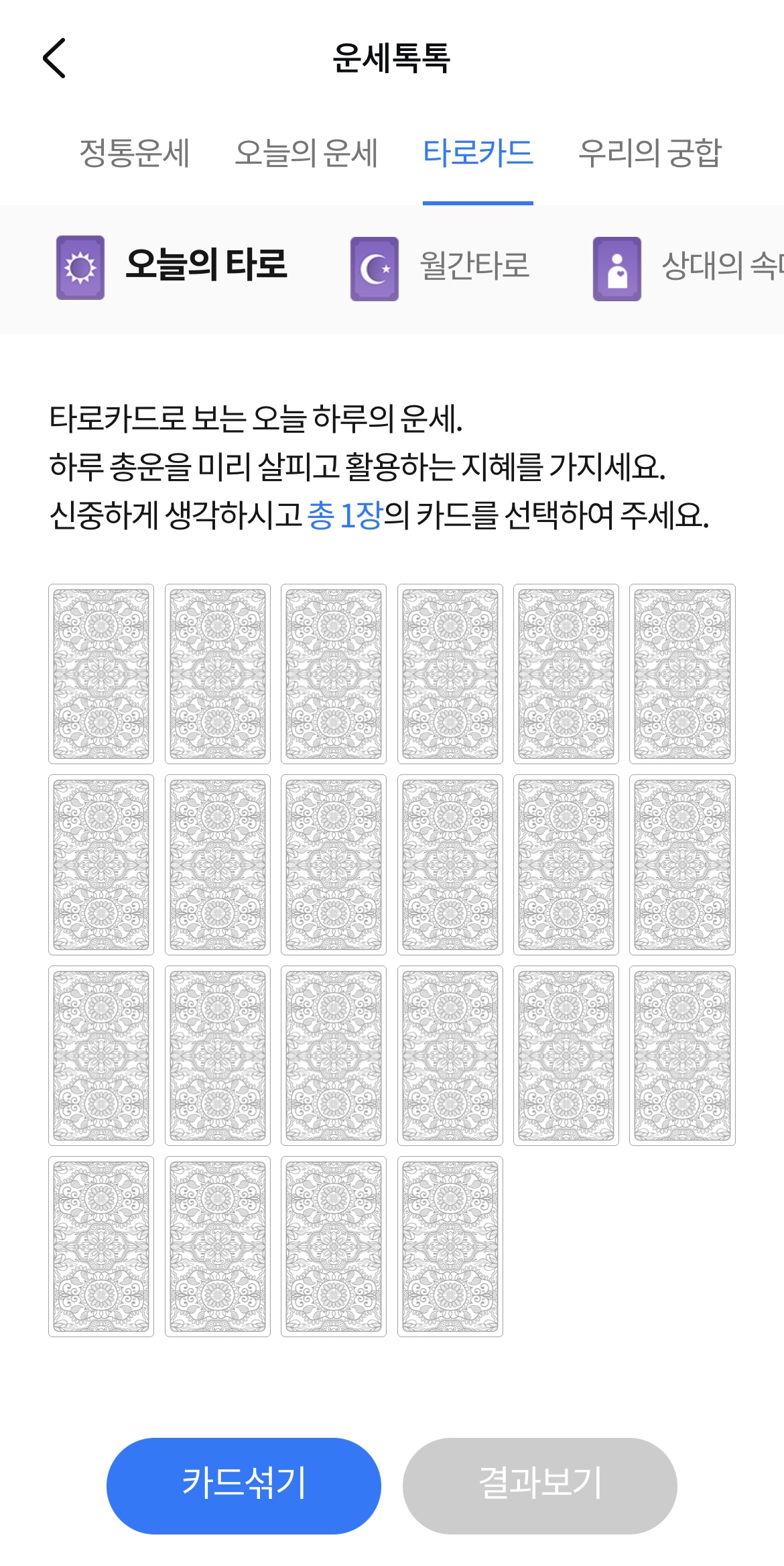 혜택 → 생활 서비스 → 운세 메뉴에서 원하는 항목을 선택합니다.